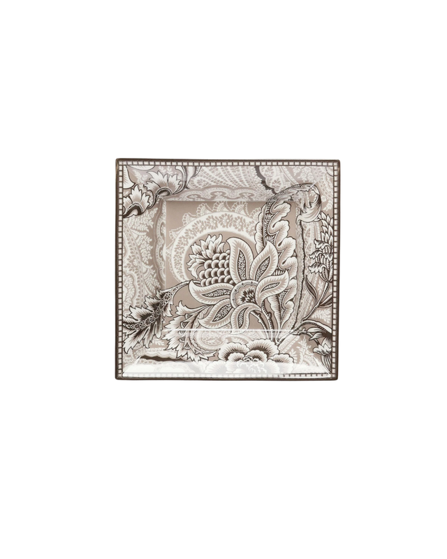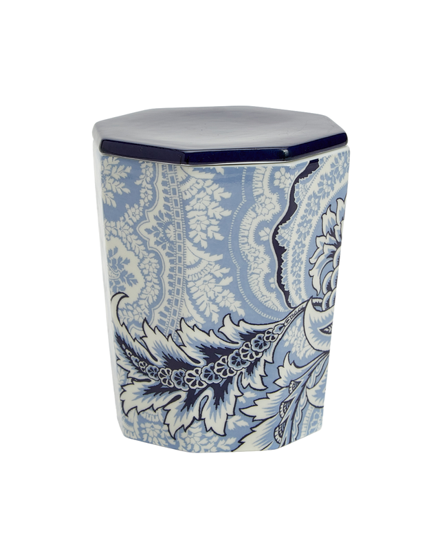 Porcelain mug with decorative foliage-inspired Paisley motif. This accessory features a lid whose pattern matches the rest of the mug.