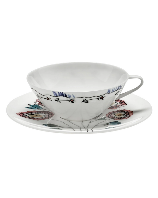Coffee Cup Low With Saucer Blossom Milk Midnight Flowers (Set Of 2)
