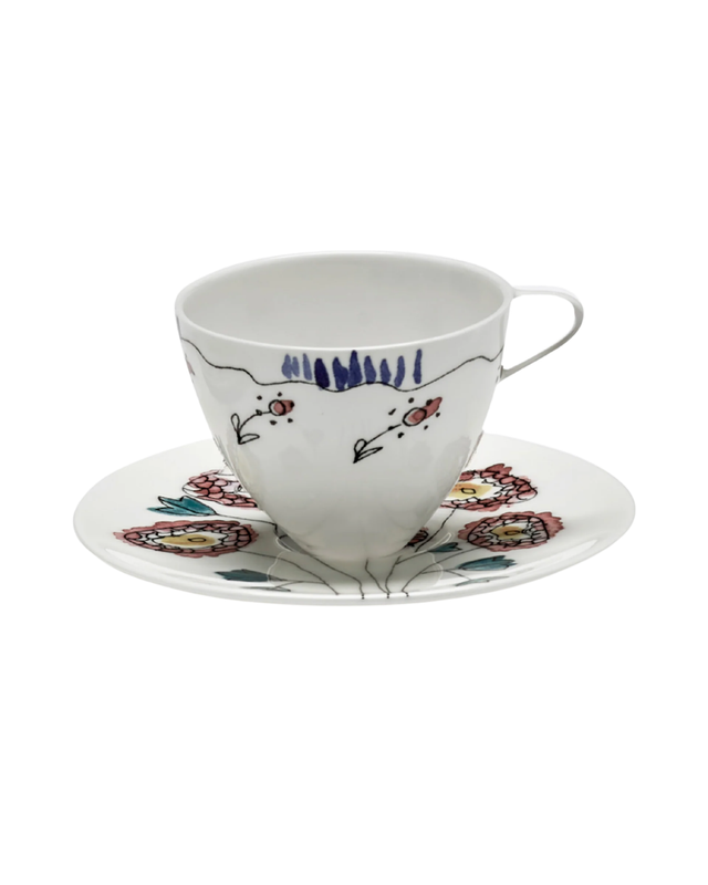 Coffee Cup High With Saucer Anemone Milk Midnight Flowers (Set Of 2)